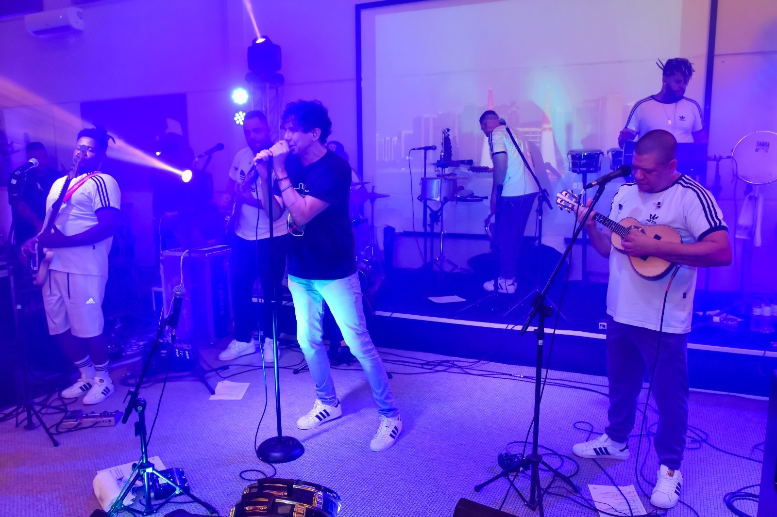 No Hangar, o artista apresentou seu novo projeto, o San7, que foi gravado recentemente e traz as músicas mais pedidas pelo público, como “Retalhos de Cetim”, “Não Deixe o Samba Morrer”, “Sunday Bloody Sunday”, novas releituras com arranjos especiais, destaque para “Locked Out of Heaven” – de Bruno Mars; que ganhou um arranjo bem suingado, uma versão em samba, mantendo as timbragens características do pop e acrescentando elementos originais do Brasil, como o pandeiro e o cavaquinho.