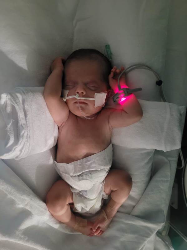 Segundo ela, os médicos disseram, na ocasião, que o bebê nasceu prematuro, por conta da pressão alta que teve durante a gravidez, que causou pré-eclâmpsia e, mais tarde, soube ainda que tinha útero didelfo, que também resultava em riscos à gravidez. Porém, a Jucelia tinha o sonho de ter uma filha e, 15 anos depois, engravidou. “Eu sabia dos riscos, mas ela veio. Foi uma gravidez difícil desde o início. Eu sentia muita dor, dores lombares e dores pélvicas, mas eu confiava. A Maria Julia acabou nascendo com 27 semanas e um dia, também prematura. Ela pesava 1,66 kg e media 37 centímetros.