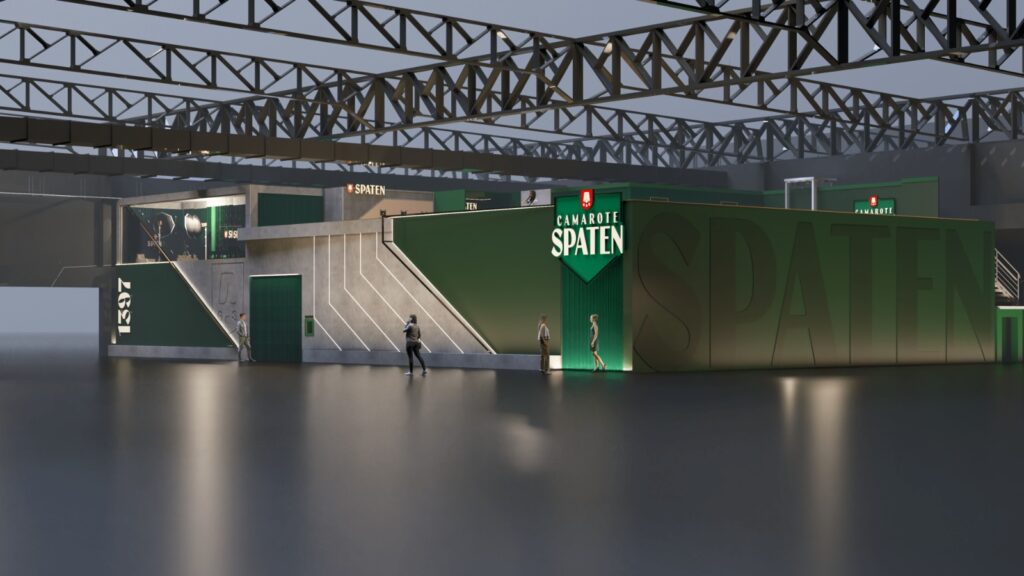As cores verde, marrom e cinza marcam a identidade visual do projeto, criando uma atmosfera que conecta o público às origens da marca. Já o palco ganha protagonismo com jogos de luz que se projetam em direção ao público, reforçando a interação e a energia coletiva dentro do camarote. “A cenografia do Camarote Spaten vai muito além de uma simples decoração, ela traduz o espírito da Oktoberfest, unindo tradição e modernidade para criar um espaço de celebração e experiências memoráveis”, conta Rafael Almeida, sócio da Agência Guru, responsável pela ativação.