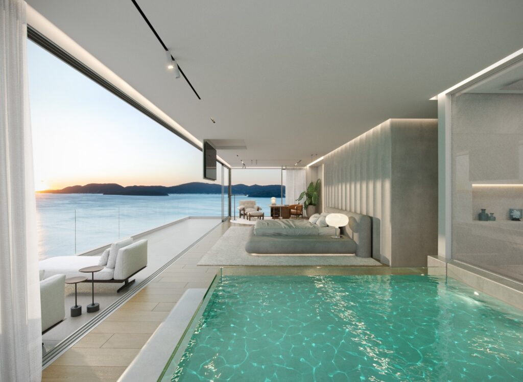 Com entrega prevista para dezembro de 2028, a cobertura foi projetada para oferecer luxo e conforto e máxima integração com a paisagem por meio de vidros de alta tecnologia e vista livre de pilares. A área de festas, no terceiro pavimento, conta com piscina, spa e prainha, rodeada por um terraço amplo com área gourmet e vista total para o mar.