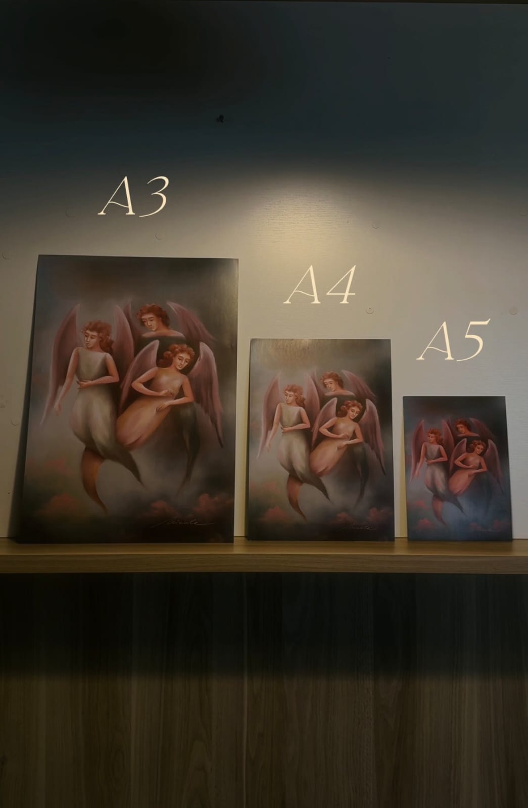 Pela primeira vez, a artista abre seu acervo ao público por meio de impressões artísticas em papel especial, com acabamento refinado e uma mensagem no verso. As peças estão disponíveis nos formatos A5, A4 e A3, perfeitas para decorar ambientes, presentear pessoas queridas ou simplesmente acolher no cotidiano um símbolo de proteção, fé e serenidade.