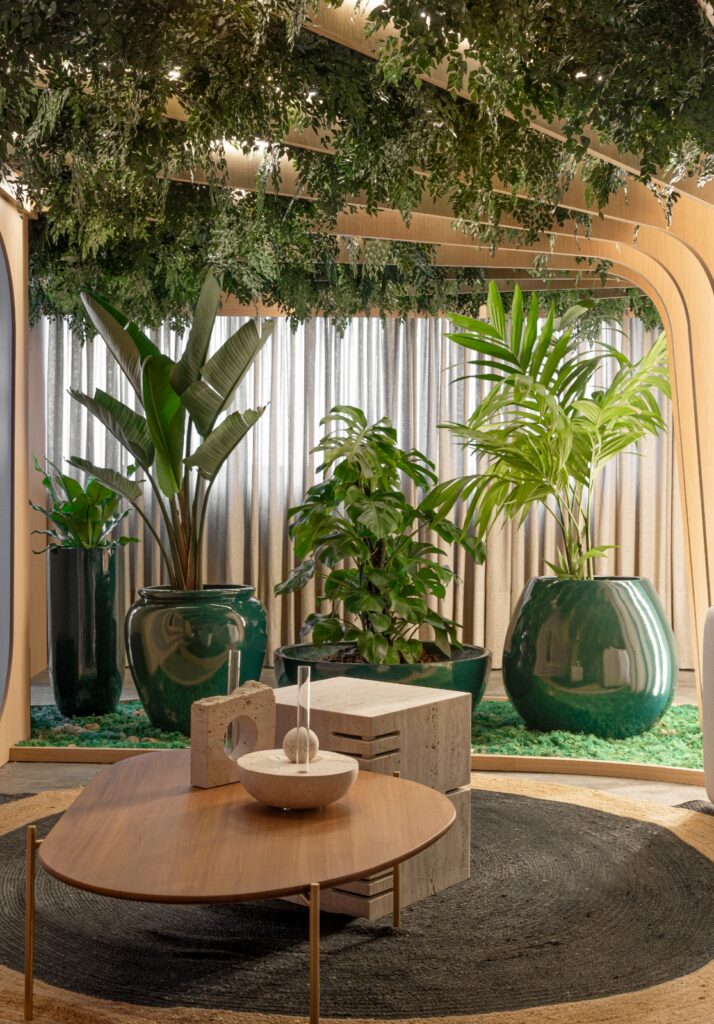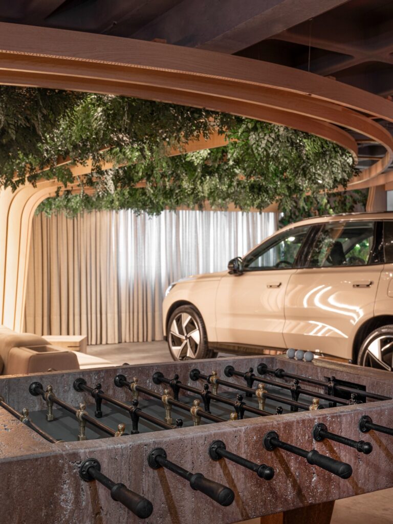 O ambiente de 97m2 exala elegância e aconchego. Materiais nobres, iluminação acolhedora e vegetação exuberante compõem o espaço que desperta sensações e inspira novos começos. Um refúgio que une conforto, natureza, tecnologia, inovação e sofisticação para uma imersão no universo Volvo.