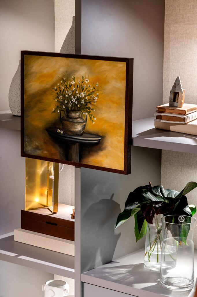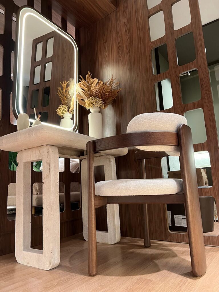 Luz suave, curvas acolhedoras e uma explosão de cores que despertam os sentidos. Aqui um pedacinho do ambiente que é o hall da mostra, onde texturas, formas e natureza se encontram num abraço visual. “Nos bastidores, tudo já floresce. E sábado a gente atravessa, juntos, esse portal dos sonhos”, diz Samira.