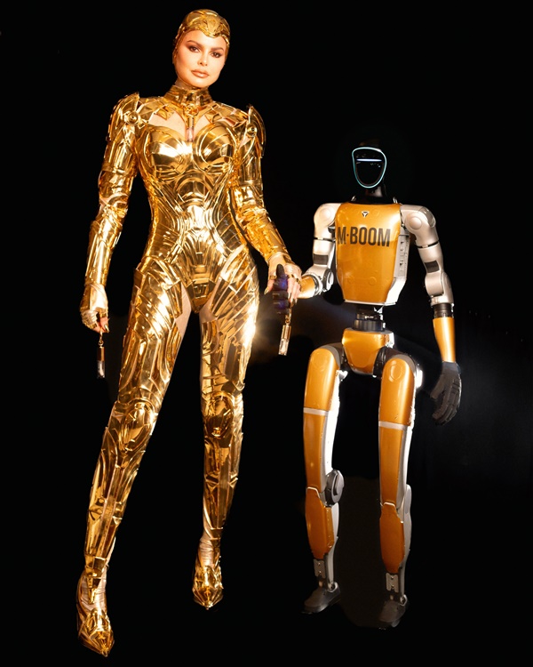 Flávia Montebeller chegou ao tapete vermelho acompanhada de um robô humanoide, simbolizando a fusão entre tecnologia e criatividade, pilares que moldam o DNA da MBOOM. Vestida como uma cyborg futurista, a empresária personificou o espírito inovador da companhia e a transição da indústria de beleza para uma nova era de possibilidades impulsionadas pela inteligência artificial e pela experimentação.