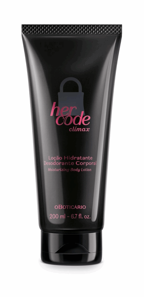 Para prolongar essa experiência sensorial, a linha, além do Her Code Clímax Eau de Parfum, apresenta também a Loção Hidratante Desodorante Corporal Her Code Clímax, com fórmula de rápida absorção e hidratação por até 48 horas, que deixa a pele macia, desodorizada e perfumada com a mesma assinatura viciante do acorde Chocolat Noir.