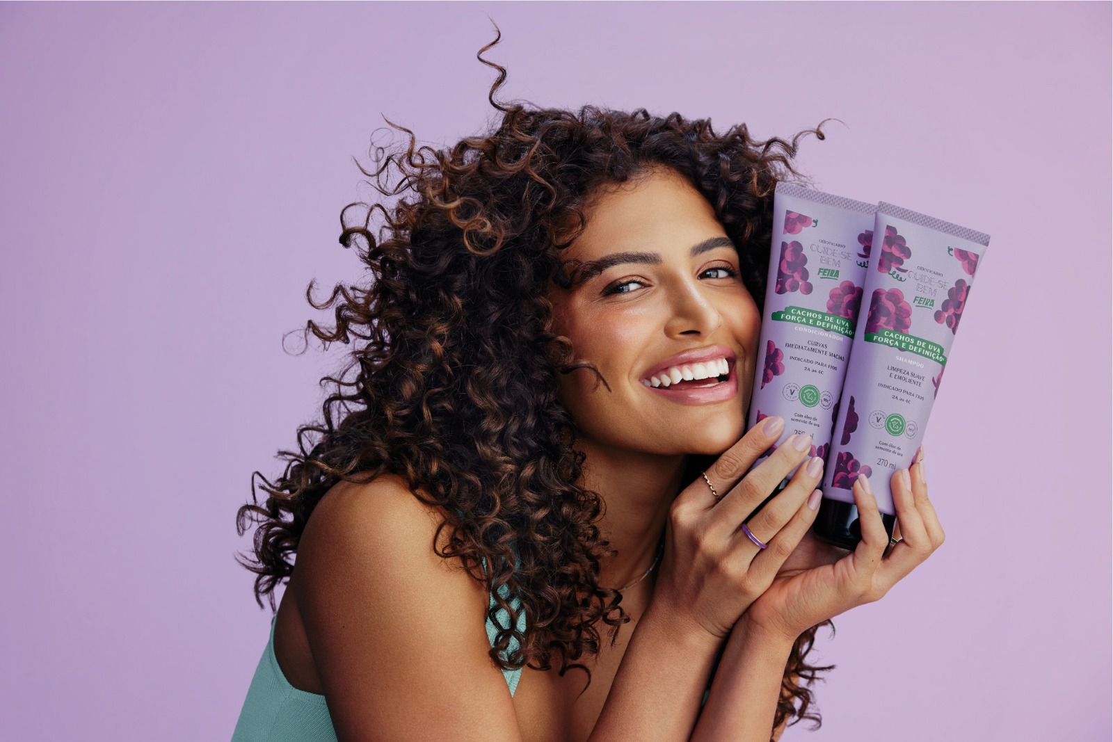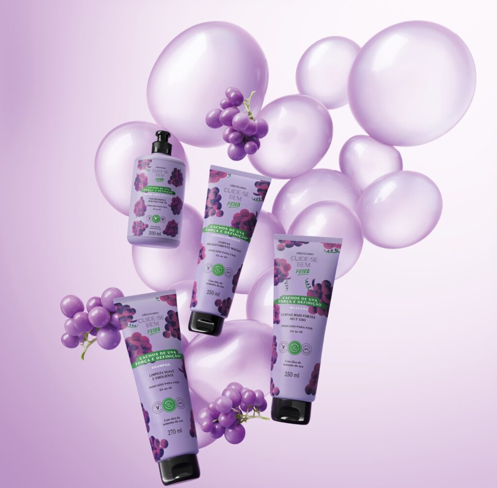 Com a novidade, a marca assume a linha Feira como protagonista em Cuide-se Bem Cabelos, incorporando famílias, como Banana, Coco, Abacate e, agora, Uva – todas com fórmulas potentes e fragrâncias inconfundíveis que oferecem cronogramas capilares pensadas para as diferentes necessidades dos fios. Banana é focada na hidratação, proporcionando fios mais saudáveis, maleáveis e com toque sedoso no dia a dia. Abacate atua na nutrição, devolvendo maciez e brilho com ingredientes que repõem os lipídios essenciais dos cabelos. Já Coco é dedicada à reparação, fortalecendo e reconstruindo fios danificados. Agora, Cachos de Uva chega para atender aos cabelos com curvatura, promovendo definição e controle de frizz.