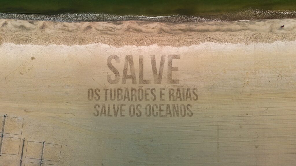 Para chamar atenção à causa, uma área de 1500 m² na areia da Praia Central na cidade de Balneário Camboriú, registrou a frase “Salve os tubarões e raias, salve os oceanos”.