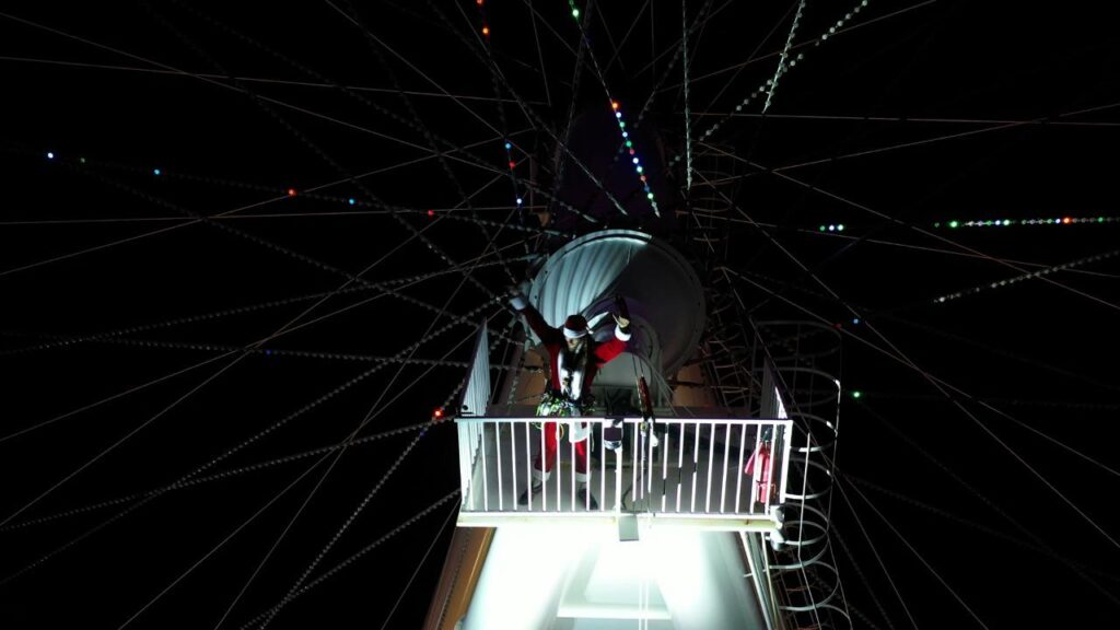 A Magia do Natal chega as alturas em Balneário Camboriú. Papai Noel está pronto para mais uma aventura emocionante na FG Big Wheel. Neste sábado, 16, o bom velhinho descerá de rapel do eixo central de uma das maiores rodas gigantes do Brasil, tornando-se a grande atração da noite.