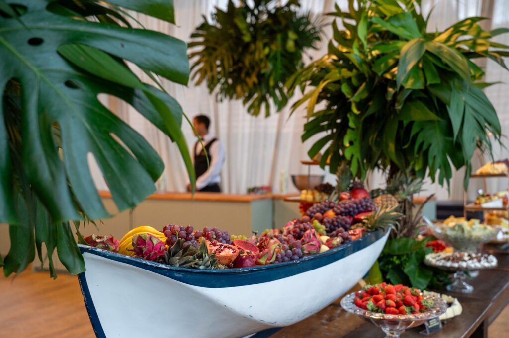 O cardápio da noite é um espetáculo à parte. Entre as entradas, destaque para o brie trufado com mel e pistache, tartar de salmão com abacate e molho ponzu e ceviche de frutos do mar. Nas ilhas principais, serão servidos bacalhau à lagareiro, escalopes de mignon ao molho rôti, salmão em crosta de castanhas e camarões grelhados na manteiga de ervas.