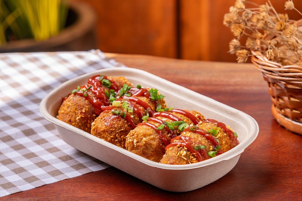 Alfred Gastrobar – Bocadito de Aipim com Linguiça. É uma massa de aipim com linguiça empanada à romana na farinha de mandioca com parmesão. A crosta crocante encontra a maionese de abacaxi defumado e o picles de cebola roxa, criando camadas de contraste entre doçura, acidez e leve defumação. Valor: R$ 22, serve uma pessoa. Outros pratos: Pirulito de torresmo, por R$ 26; e mini churros com açúcar e canela, regado com calda de chocolate meio amargo (5 unid) por R$ 22.