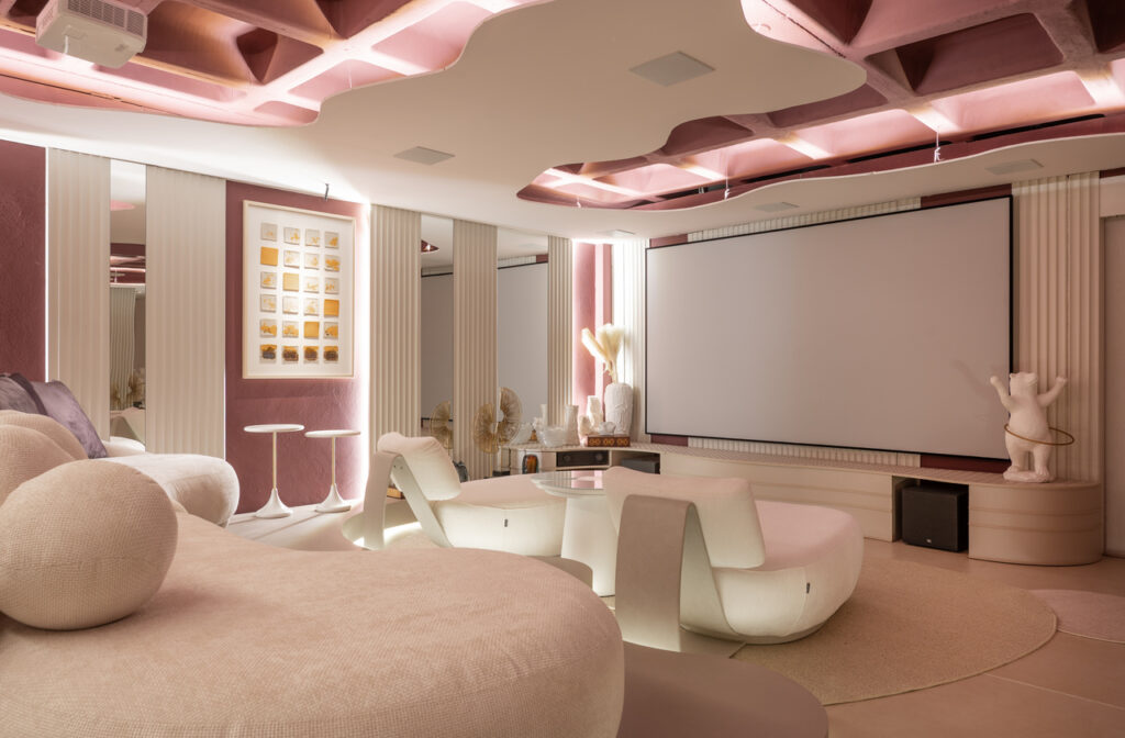 A sala Cinema dos Sonhos nasce como um refúgio para os sentidos. Um ambiente onde o real desacelera e o imaginário floresce em alta definição. É um espaço de 67 m2 onde a tecnologia e o aconchego caminham juntos para criar uma experiência que vai além da tela de 133’. Aqui, o som não apenas preenche, mas conduz. A imagem não apenas projeta, mas transporta. E o corpo, acolhido por formas orgânicas e conforto extremo, encontra descanso. Um universo onde o agora vale mais do que qualquer realidade lá fora.